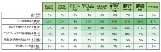 (2)は、消費者が実際に環境負荷の低いプロセスで生産・販売される商品に価値を感じ、購買行動へつながるきっかけとなる「生活を取り巻く環境づくり」、「動機形成因子としてのコミュニティづくり」が重要です。例えば、図表に示すように、食料品の購入・食生活においてCO2削減に貢献している商品を選択する層は、他の層と比較して、環境保護につながるような行動を継続するためのさまざまな取り組みを行っています。その中でも比較的選択率が高いのが、小売店の陳列棚、専門スーパー、専門通販といった購買チャネルです。こうした購買行動に結びついた場面での働きかけが有効であることが示唆されています。