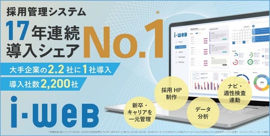 人材の“採用”から“定着”、その先の“活躍”までを支援する人材サービス事業を展開する株式会社ヒューマネージ(本社:東京都千代田区、代表取締役社長:齋藤 亮三)は、ヒューマネージが提供する採用管理システム『i-web』が今年、17年連続で導入シェア第1位*となりましたことをご報告申しあげます。
