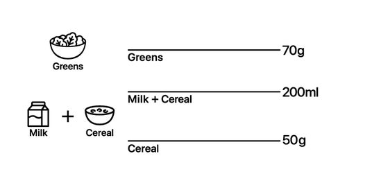 *あすけんオリジナルサラダボウル野菜70gと、牛乳200ml&シリアル50gの分量がわかる目盛りつき。