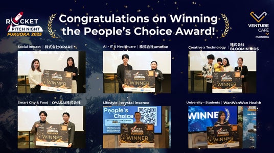 来場者およびオンライン参加者の投票により、各カテゴリーから優秀者が1名ずつ選出され、CIC Fukuoka コワーキングスペース6ヶ月利用権が贈呈されました。