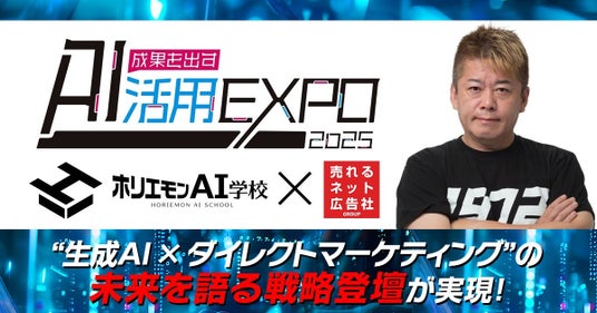 売れるネット広告社グループ株式会社(本社:福岡県福岡市、代表取締役社長CEO 加藤公一レオ、東証グロース市場:証券コード9235、以下 売れるネット広告社)は、業務提携先であり、堀江貴文氏がプロデュースする「ホリエモンAI学校株式会社」主催の国内最大級のAIビジネスカンファレンス『成果を出すAI活用EXPO』にて戦略登壇することをお知らせいたします。