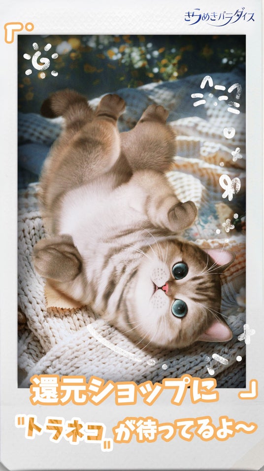 さらに大人気ブリティッシュショートへアに、トラネコが登場!ペット画面の背景を変更できるようになるほか、預けスロットの上限が18に拡大。これでたくさんの家族を迎えることができますよ~