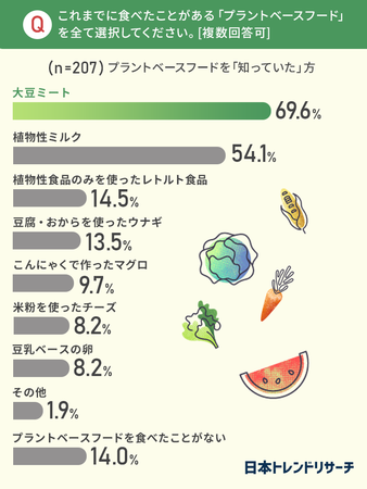 続いて、「知っていた」と回答した方に、食べたことのある「プラントベースフード」について聞きました。