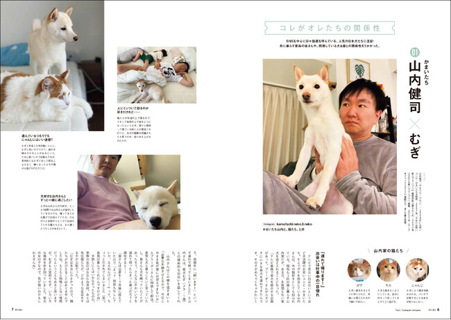 今やテレビで見ない日がない大人気お笑い芸人・かまいたちの山内健司さんと、愛犬の白柴・むぎとの関係性をうかがいました。運命的な出会いをはじめ、ご家族や同居する猫たちとの距離感についてなど、むぎのかわいらしいキャラクターが浮き彫りとなるエピソードが語られています。