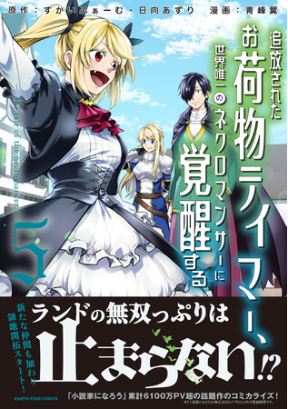 アース・スターノベルにて刊行中のノベルが原作で、現在コミック アース・スター公式サイトにて連載中の人気作品『追放されたお荷物テイマー、世界唯一のネクロマンサーに覚醒する ~The tale of the necromancer.~』(原作:すかいふぁーむ・日向あずり 漫画:青峰翼)第5巻を7月12日(水)に発売いたします。