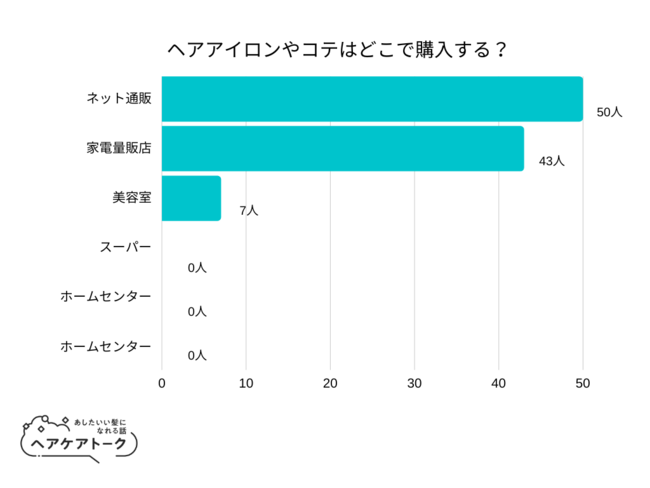 「ヘアアイロンやコテはどこで購入する?」とアンケート調査した結果、1位は『ネット通販』でした。
