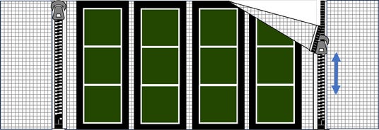 年間発電量を最大化させる設置方法(奥)・従来の設置方法(中央)・ファスナー取り外し式工法(手前)