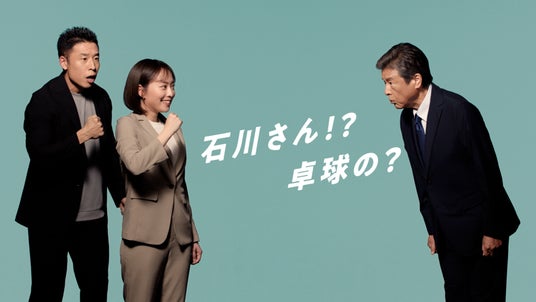 なかやまきんに君さんの掛け声にカットイン!三浦友和さんと石川佳純さんの軽妙なトークと試合さながらのスマッシュポーズが見どころ