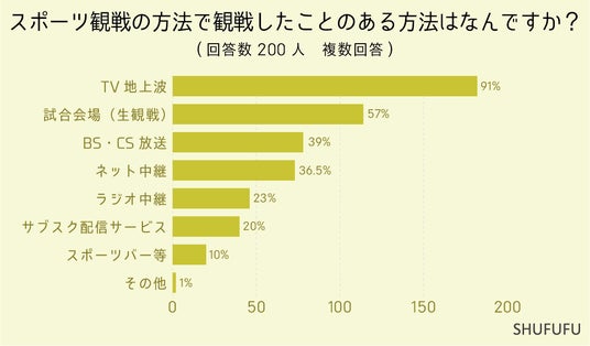 スポーツ観戦の方法で観戦したことのある方法はなんですか?(複数回答)