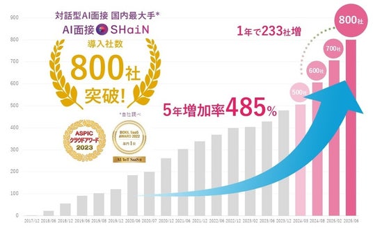 株式会社タレントアンドアセスメント(本社:東京都港区、代表取締役:山崎俊明、以下タレントアンドアセスメント)は、同社が開発・提供する対話型AI面接サービスSHaiN(以下、SHaiN)において、2025年6月、導入した企業が累計800社を突破したことをお知らせいたします。