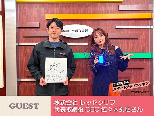 第49回のゲストには株式会社レッドクリフの代表取締役CEO・佐々木孔明 が登場。大阪・関西万博のドローンショーを手がけ、一年で14万回ものドローン飛行を実施し、ギネス世界記録の認定を2つ獲得している同社は、次世代のメディア表現を手掛ける企業として注目されている。