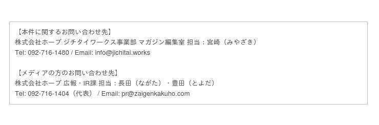 セミナー案内、メールマガジン、冊子の無料発送などの特典付きの自治体職員・地方議会関係者限定の個人会員を募集中です。また、自治体と民間企業の協働支援プラットフォーム「ジチタイワークス HA×SH(ハッシュ)」(https://jichitai.works/individual/member)、「ジチタイワークス無料名刺」(https://meishi.jichitai.works)サービスも好評受付中です。ジチタイワークスの内容は、ジチタイワークスWEB(https://jichitai.works/)にてもご覧いただけます。