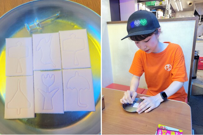 また、ネオ焼肉ふたごでは“お通し”として「線香花火」をプレゼントしたり、「光る綿あめ」などの夏祭りをイメージしたサービスも展開しておりますが、昔懐かしの夏祭りの定番である「型抜き」や、「ミルクせんべい」の提供も開始します。