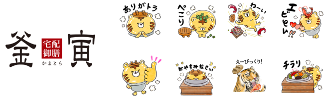 宅配御膳「釜寅」より、 ”トラかまさん”のLINEスタンプが全16種類で登場いたします。