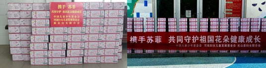 ・社会的信頼性が高い基金会や影響力のあるタレントと協力し、生理用ナプキン『SOFY』を寄付しました。