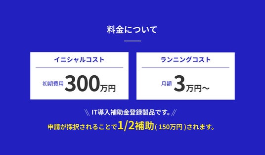 ~IT導入補助金を活用することでイニシャルコスト1/2の150万円から提供可能~