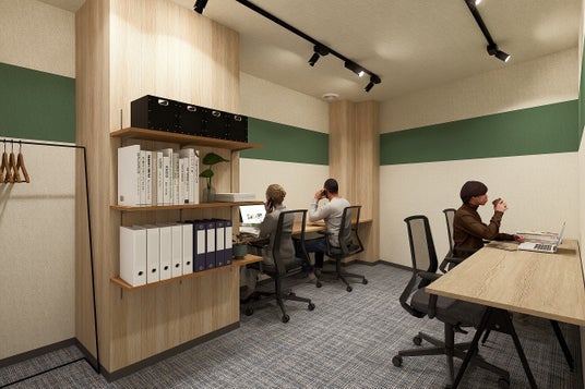当施設は、2Fにコワーキングスペース・レンタルオフィス、3・4Fは事務所向けの約30平方メートル 前後の広さがあり、大型モニター搭載の会議室や倉庫が備わったセットアップオフィスを展開します。ソロワーカーや自習ユーザーの他に、支店やサテライトオフィス用途の企業まで幅広いニーズに応えられるワークスポットを目指します。