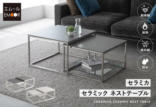 「身体に合った寝る・座る・たたむ」を提供する健康家具ブランドEMOORを展開する株式会社エムール(東京都立川市:代表取締役 高橋 幸司/以下エムール)は、2025年7月20日より、高級感と機能性を兼ね備えたネストテーブル『Ceramica セラミカ』(以下、『セラミカ』)の販売を開始しました。