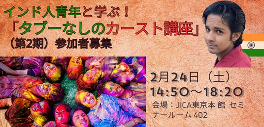 1.教科書で学べない/インドに住んでも聞けないカーストの裏側を知れる!留保制度をめぐりデモが起きていること、留保制度の拡大が政治の道具になっていること、優遇されたいからカーストを偽って下げる人がいること‥‥だけではなく、ひとりのインド人青年が本音を語ります。カーストのリアルを少しでも知ることはインドを少しずつ理解していく最初の一歩。世界の人権問題を学んでいる若者にお勧めです(「タブーなしのカースト講座」で得た見方・意見はさまざまな場面で使えます)。2.ディスカッションで、自分なりの考えを整理し、他人に伝える力を鍛えられる!ディスカッションをする機会は3回。正解がない物事に対して、現実に起きていること(ひとりのインドの人の体験)をベースに、さまざまな情報を整理し、考え、自分なりの意見をもち、それを伝える力を鍛える場になります。カーストに代表される平等性/人権の問題はなにもインドだけの話ではありません。グローバル志向の学生にとっては、就活でも必須のグループディスカッションの練習にもなります。3.途上国好きの多種多様な人たちとネットワーキングできる!ganasのプログラムには毎回、10代後半の大学生から60代のベテラン社会人(国連職員やJICA職員、NGO職員、JICA海外協力隊OB・OGなども)まで、さまざまな方に参加していただいています。オンラインではなく、東京・幡ヶ谷のJICA東京で開講する「タブーなしのカースト講座」は盛り上がること間違いなし。ディスカッションや二次会(打ち上げ)も楽しみですね。社会人にとっては情報交換の場に、学生にとってはキャリアを考えるきっかけの場になります。4.世界でプレゼンスが増していくインドと将来かかわるときに役立つ!中国を抜き、世界最大の人口を抱えることになったインド。インドを語るうえで絶対に避けて通れないのがカーストです。カースト制度の概要や歴史は専門書に書いてあっても(とはいえ複雑すぎて理解は難しい)、インド人の本音を知る機会はレア。大国インドとかかわるのは必須になってくるこれからの時代(中国のようになる)、インド人を理解する準備をしておきませんか?■講師/話題提供者