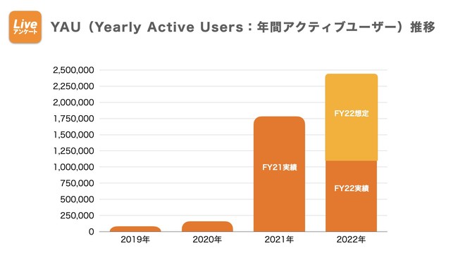 Live!アンケートのYAU(Yearly Active Users:年間利用者数)推移