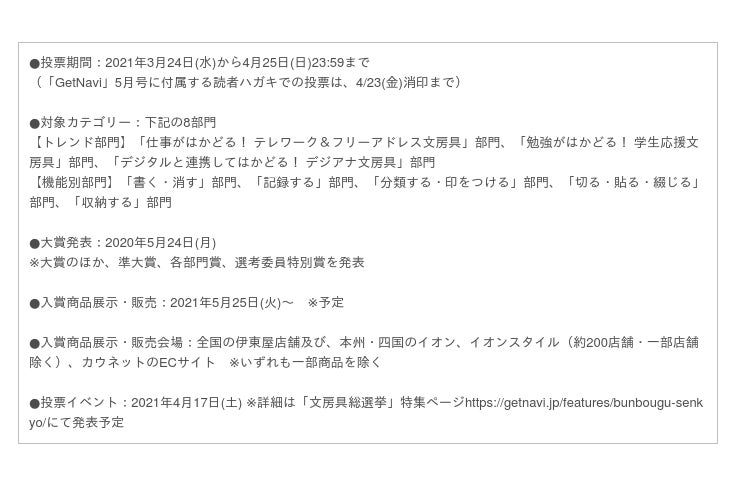 ・「文房具総選挙」特集ページ(投票ページへリンク) https://getnavi.jp/features/bunbougu-senkyo/