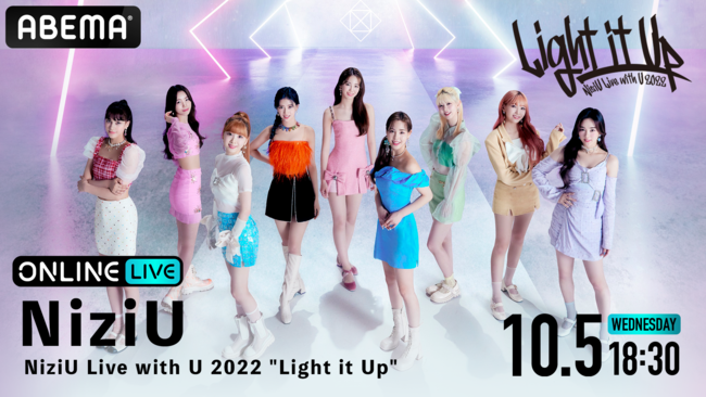 新しい未来のテレビ「ABEMA」は、「ABEMA PPV ONLINE LIVE(アベマ ペイパービューオンラインライブ)」にて、9人組ガールズグループ・NiziUが開催する初単独ツアー『NiziU Live with U 2022 "Light it Up"』の公演最終日のライブの模様を、2022年10月5日(水)18時30分より生配信することを決定いたしました。また、本ライブのチケットを2022年9月12日(月)16時より販売開始いたします。