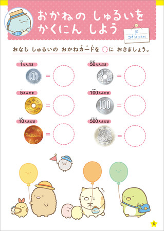 株式会社主婦と生活社は、新刊『すみっコぐらし おかねをまなぶっく 入学準備~小学1年』を6月24日(金)に発売。子どもたちに大人気の「すみっコぐらし」のキャラクターと楽しく学びながら「お金」の知識が身につくドリル形式の本です。厚紙のお金やレジスターも付いているので、お金の種類や数え方、両替の基本はもちろん、お買い物の練習をすることもできます。