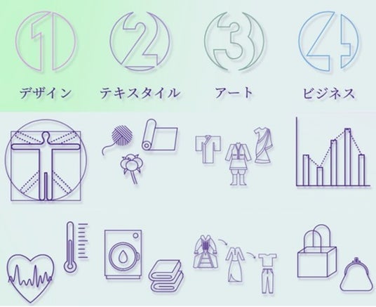 ファッション産業の変化や、ファッションという概念の拡張、資源や人材の持続可能性やウェルビーイング、国際化が進む社会への対応など、現代の社会課題に即した最新のカリキュラムを紹介しています。