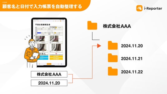 ▼ケース1:顧客名と日付で入力帳票を自動整理する。