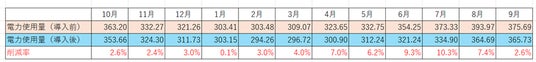 SPACECOOL導入前後の電力使用量の比較(QTnet作成)