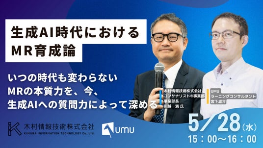 ユームテクノロジージャパン株式会社(本社:東京都新宿区、代表取締役:松田しゅう平、https://www.umujapan.co.jp)は、木村情報技術株式会社(本社:佐賀県佐賀市、代表取締役 木村 隆夫)と共同で、「生成AI時代におけるMR育成論~いつの時代も変わらないMRの本質力を、今、生成AIへの質問力によって深める~」と題するオンラインセミナーを、2025年5月28日(水)15:00~より開催いたします。
