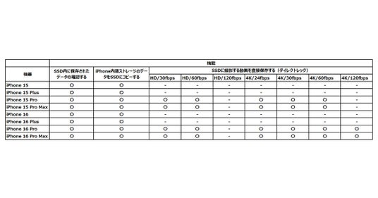 iPhoneのProRes動画撮影*に対応し、NX-P4SEに直接保存可能。4K 120fpsの高画質録画にも対応しています。
