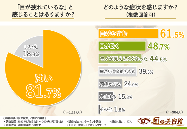 「目の美容院」サイトより、なんと8割以上の方が「目が疲れているな」と感じることがあります。