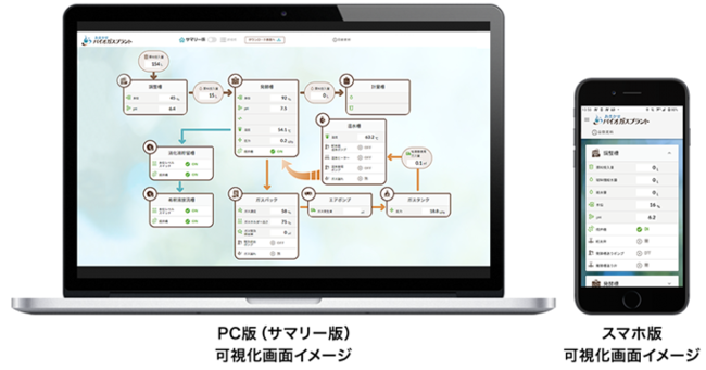 1. バイオガスプラントの稼働状況などを可視化し、リアルタイムでPC・タブレット・スマホから閲覧可能