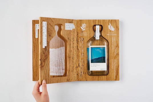 白馬村で近年問題になっている「ナラ枯れ」の被害に遭った木材を活用し、ブック型のパッ ケージを制作。HAKUBA GINに込められた自然保全の思いやボタニカルを深く知るための情 報を掲載しています。