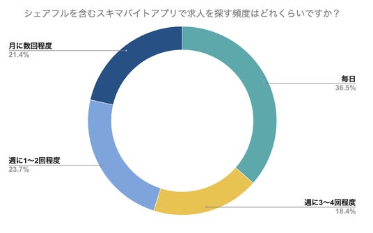 上記の質問で、定期的に求人を探すと答えた方にその頻度を聞くと、毎日探すと回答した方が36.5%と最多の結果となった。