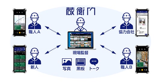 このような建設業界の状況の中、「蔵衛門」は、現場監督の負担を軽減するために、『蔵衛門Pix』で新人、協力会社、職人との工事写真の撮影を分担する提案をします。