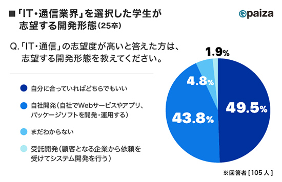 ・43.8%は学生段階から「自社開発」を志望