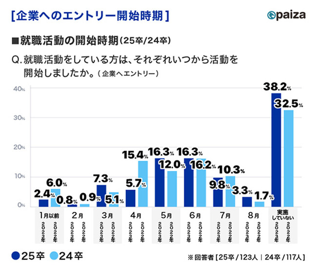 ・企業へのエントリー開始時期:2024年度卒と2025年度卒で大きな違いは見られない