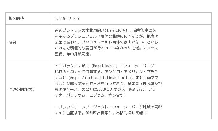 〇南アフリカ共和国・白金族プロジェクト、北部隣接鉱区との統合について~更なるプロジェクト価値の向上に向けて~(2015年5月27日発表)