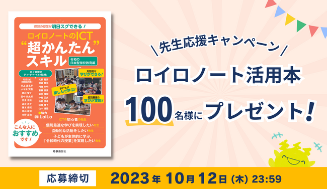 私たちLoiLoでは、本書をたくさんの先生方、教育関係者の皆さまにお読みいただきたく、抽選で100名様にプレゼントいたします。応募締切は10月12日(木)23:59です。応募フォームより、ぜひご応募ください。