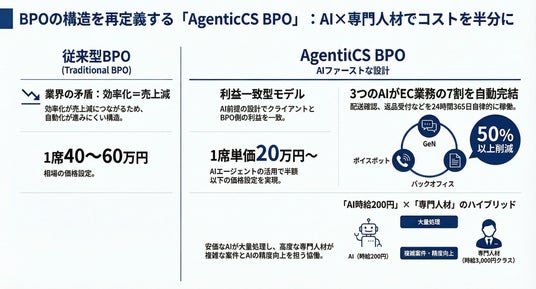 カラクリ株式会社(本社:東京都中央区、代表取締役CEO:小田 志門、以下「カラクリ」)は、AIエージェントが初日から稼働することを前提に設計した、EC企業向け次世代型BPOサービス『AgenticCS BPO』を2026年4月より提供開始します。