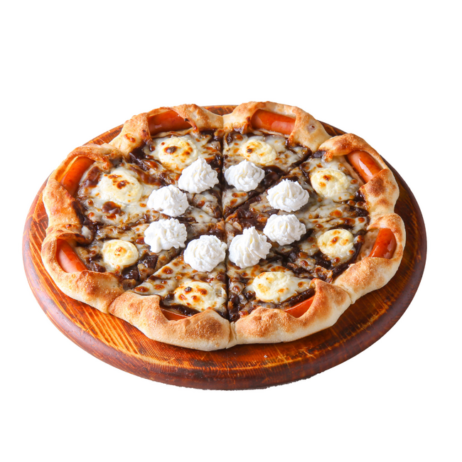 このピザは、ピザ全体にコーヒーソースを敷き詰め、深みのあるコーヒーの味わいを完全再現。トッピングのクリームチーズがコーヒーのコクを引き立てながら、マイルドな舌触りへと昇華。別添のホイップクリームをトッピングすれば、ビジュアルも味もまるで本物の「ウインナーコーヒー」そのもの。脇役だと考えられがちですが、実はピザ生地そのものの美味しさを味わえる“みみ”に、誤った「ウインナーコーヒー」に抱いていたみんなの勘違い“ウインナー”を包んじゃいました。アメリカでは定番のベーコン×メープルの組み合わせのようなクセになる「甘じょっぱさ」で、自信をもっておすすめできる味に仕上がりました。1枚のピザで“正解”と“勘違い”の「ウインナーコーヒー」が共存する、ちょっとカオスだけどクセになる味わいの1枚を是非お楽しみください。
