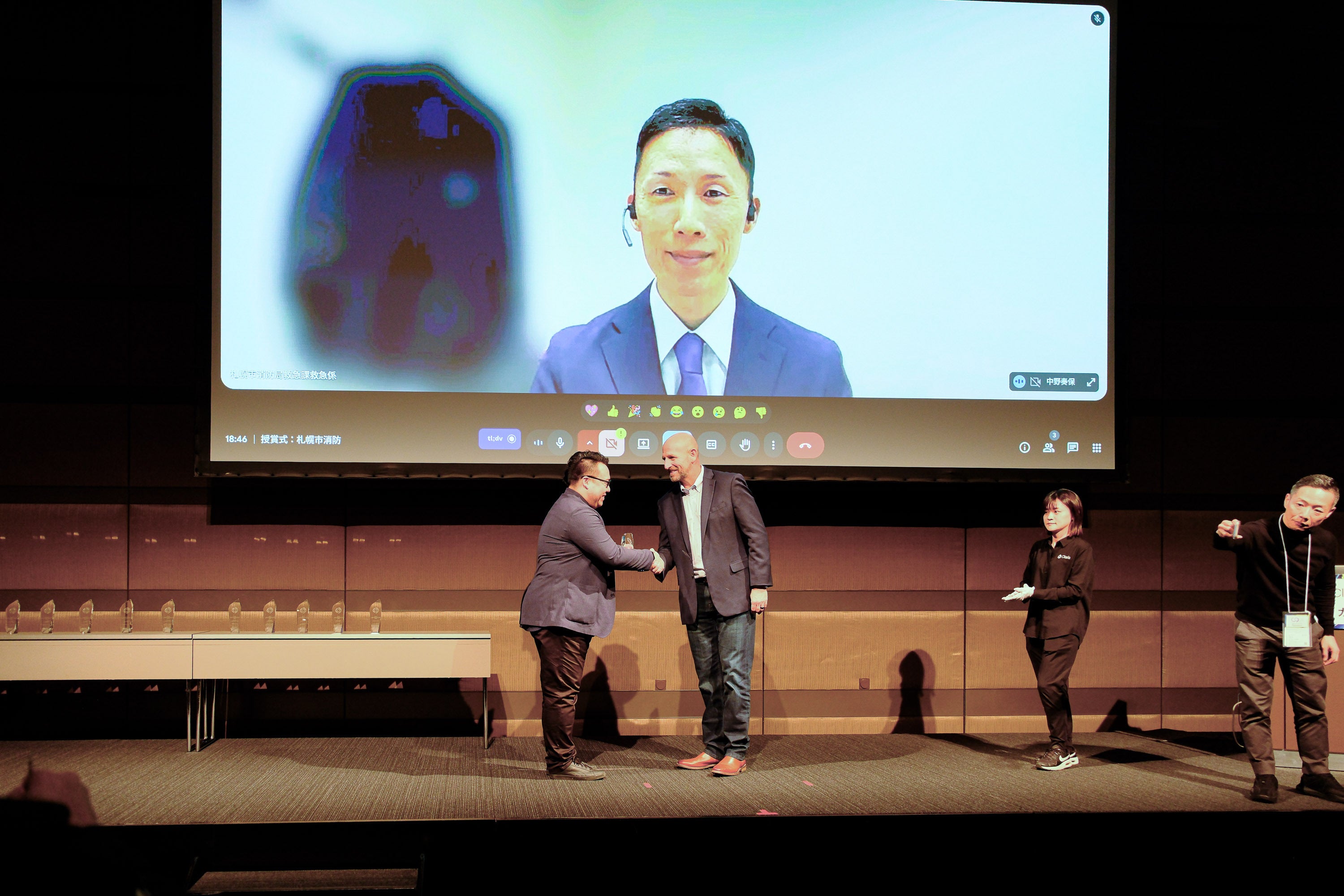 また、今回の取り組みは、Clarisカンファレンス2025(虎ノ門ヒルズ フォーラムにて開催)のオープニング動画として選ばれ、Claris International Inc. CEOであるRyan McCann(ライアン・マッキャン)氏より、FileMaker と AI を活用し課題を解決した事例動画として紹介されました。この動画では、札幌市消防局がどのように地域の救急医療の課題と向き合い、DX化の推進に取り組むことで乗り越えているのかを現場の声を中心に紹介されており、Clarisの公式YouTubeチャンネルにて公開されています。