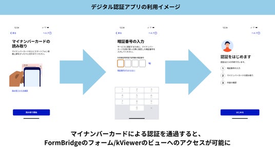 FormBridgeのフォーム・kViewerのビューへのアクセス時にマイナンバーカードによる身元確認を行うことで、ユースケースに応じた本人確認プロセスの実現が可能になります。