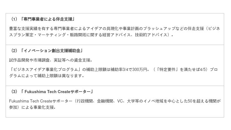 ▼「Fukushima Tech Create(FTC)」の支援内容