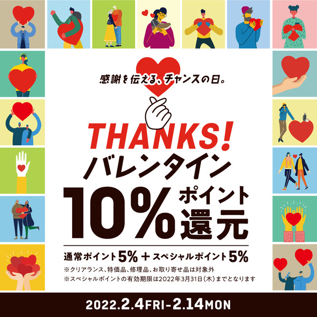 登山・クライミング・アウトドア用品総合専門店、クライミングジムを運営する株式会社好日山荘(本社:兵庫県神戸市、代表取締役社長 池田 真吾)は、2月4日(金)より好日山荘全店(フランチャイズ店含む)でメンバーズポイントが10%還元となる「THANKS!バレンタイン」を開催します。