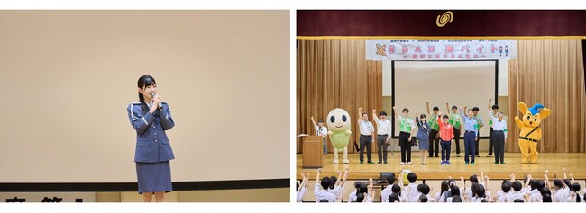 最後に、尾崎支援官が『闇バイトは犯罪。絶対に手を出さない!』と呼び掛け、全校生徒が一斉に掛け声を挙げました。