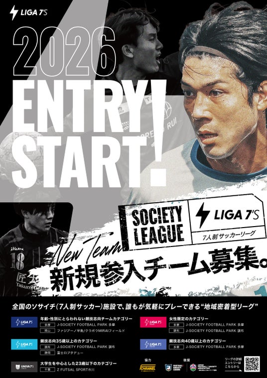 一般社団法人日本ソサイチ連盟(代表理事 馬場貴嗣、東京都多摩市、以下 日本ソサイチ連盟)は、「地域に根差した」新しいソサイチリーグ【LIGA 7'S】の後援・協力を行い、共に取り組んでまいります。