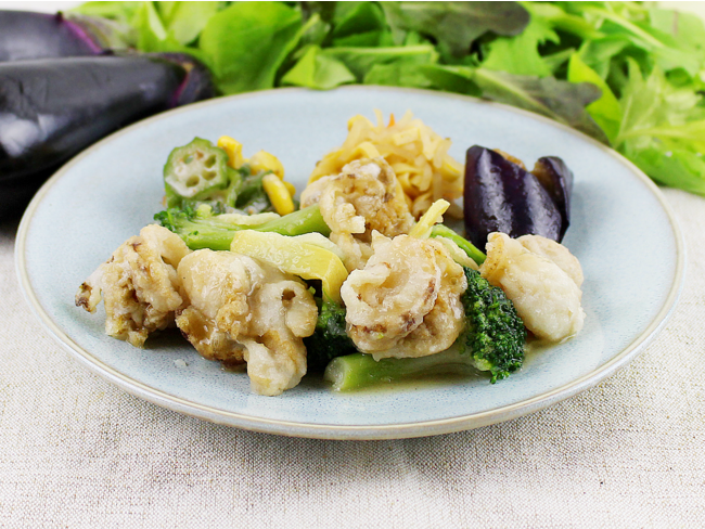 大ぶりな帆立をブロッコリー、たけのこと一緒にあっさりとした塩味の中華あんで仕上げました。中国料理では欠かせない調理法である油通しをすることによって、帆立のうま味や香りを閉じ込めております。中華あんとよく絡めてお召し上がりください。